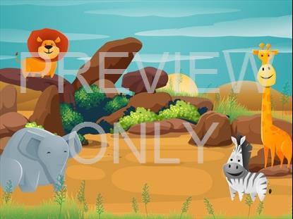 Set a fun and adventurous tone for your children’s ministry event with this safari themed still background. It features a savanna scene with a rock formation where several cartoon animals are hanging out. A lion sits atop a rock formation like a king while an elephant, zebra and giraffe hang out below. This background still is part of the Safari Adventure Collection and makes a great fit for vacation Bible school, kids camp or other youth activities and events.